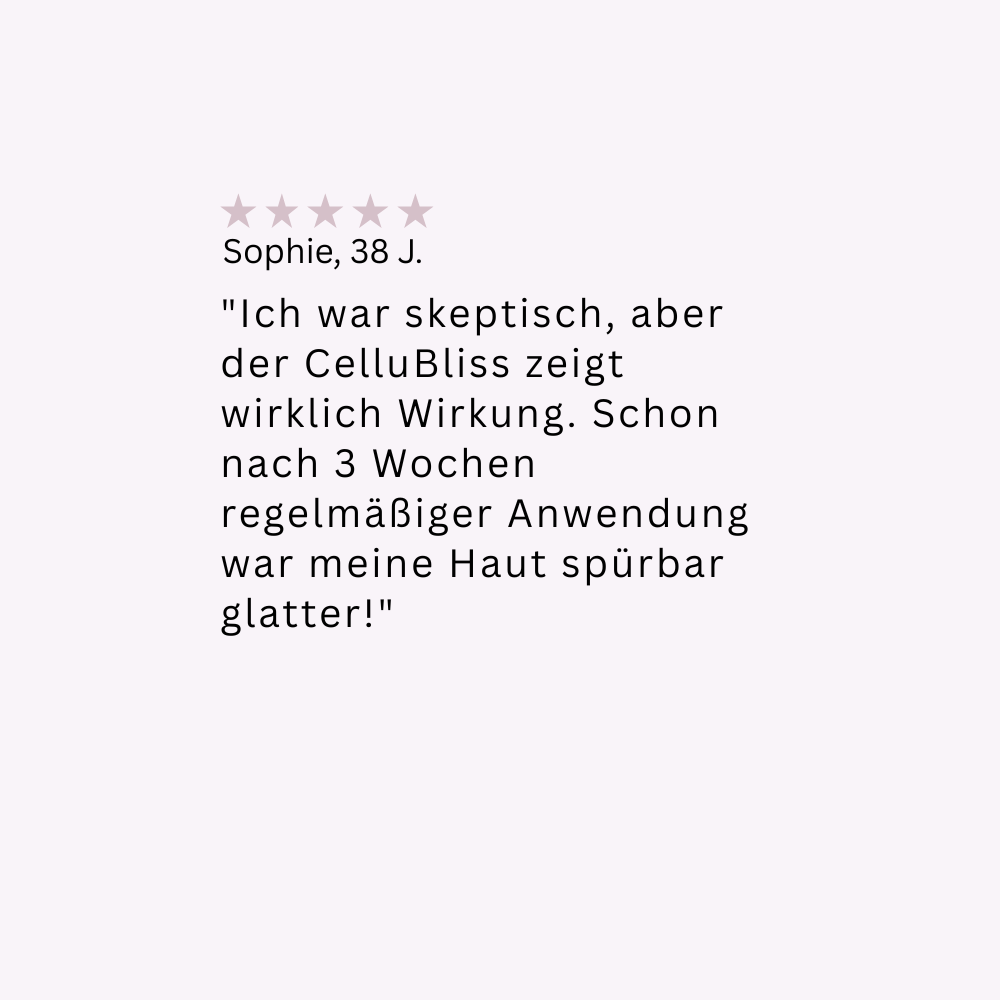 Über 50.000 zufriedene Kunden vertrauen bereits auf CelluBliss. Teste es selbst mit 30 Tagen Geld-zurück- Garantie