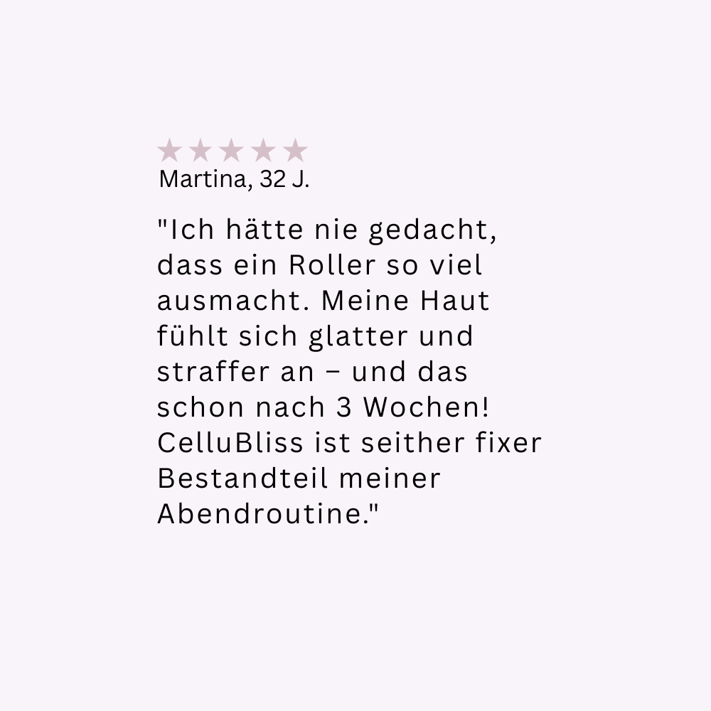 CelluBliss ist mehr als ein Cellulite Roller – es ist dein tägliches Ritual für glattere Haut, mehr Selbstvertrauen und echte Veränderung.